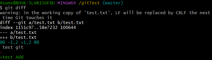 "test Add" 한 줄 추가된 것을 확인 가능합니다.
