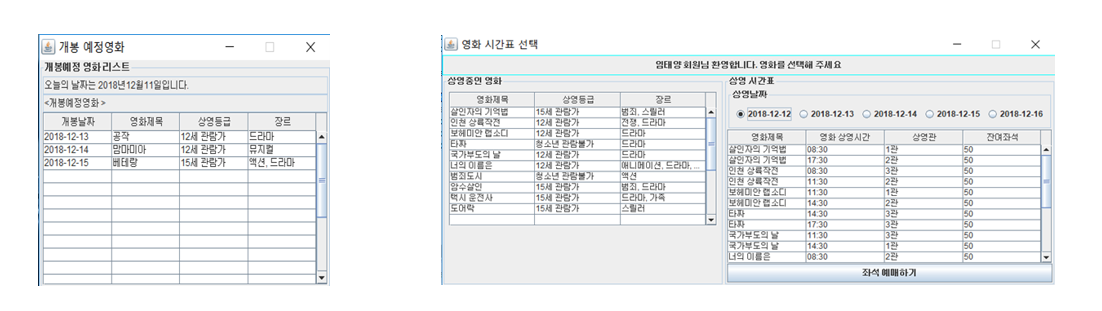 DB에 저장되어 있는 데이터를 가지고 개봉예정 영화 조회, 상영 중인 영화 시간대 확인하기