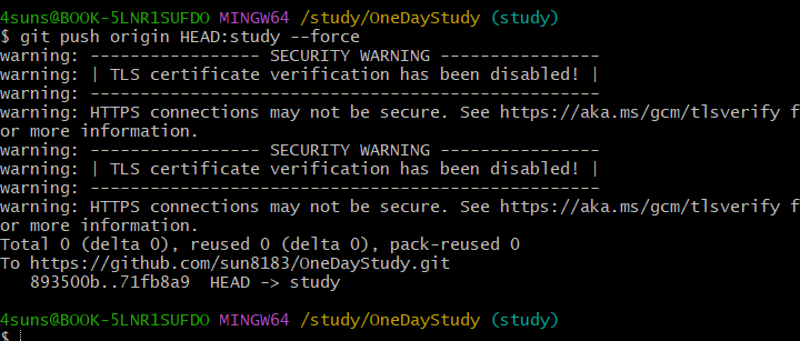 1. git push origin HEAD:#{부모의 Main Branch} --force