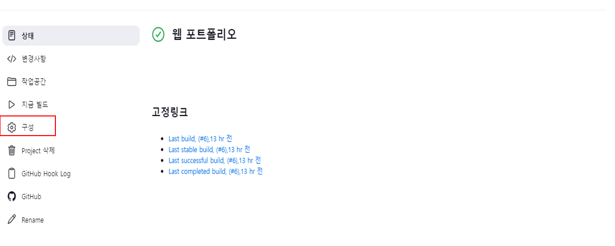 이전글에서 만든 Project로 이동 후 구성 버튼을 클릭합니다.