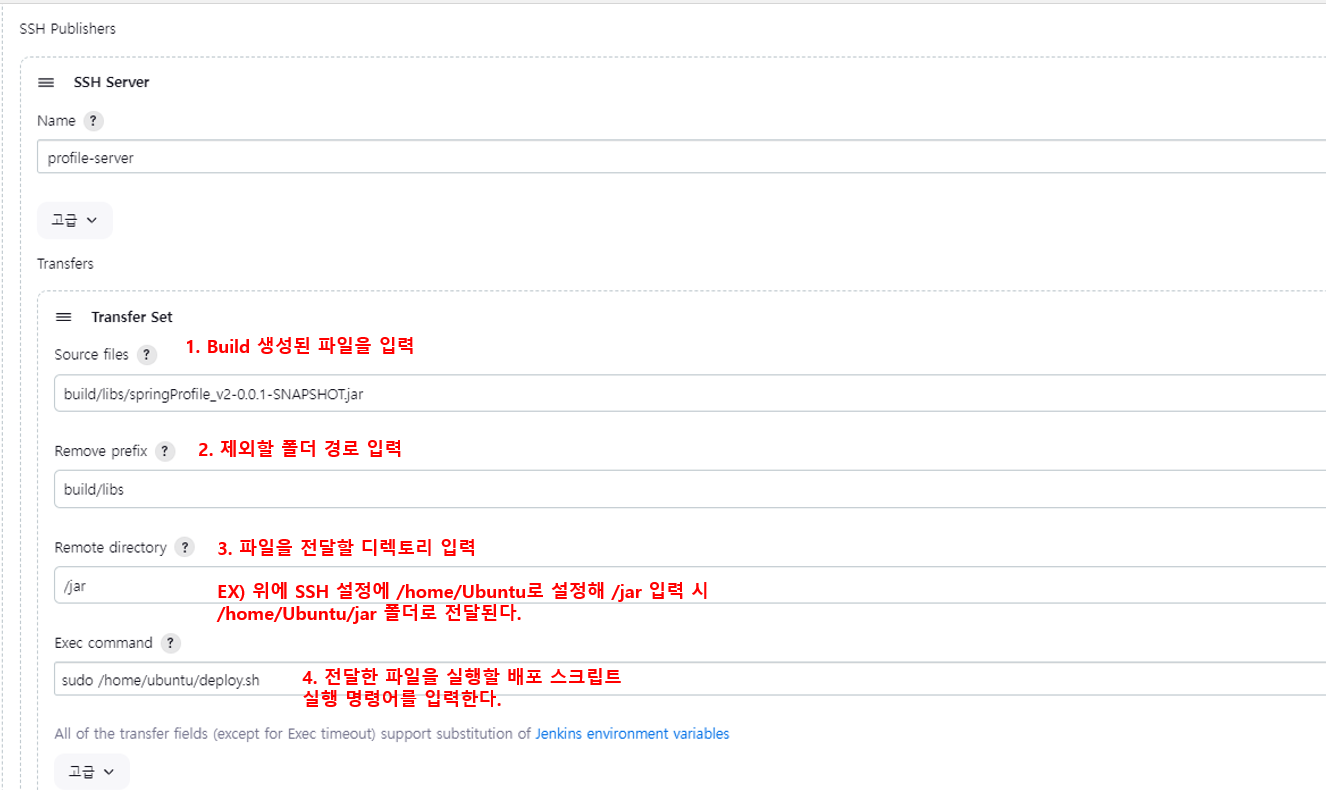 Remote Directory -> 배포할 서버의 jar 파일이 이동될 경로를 입력합니다.