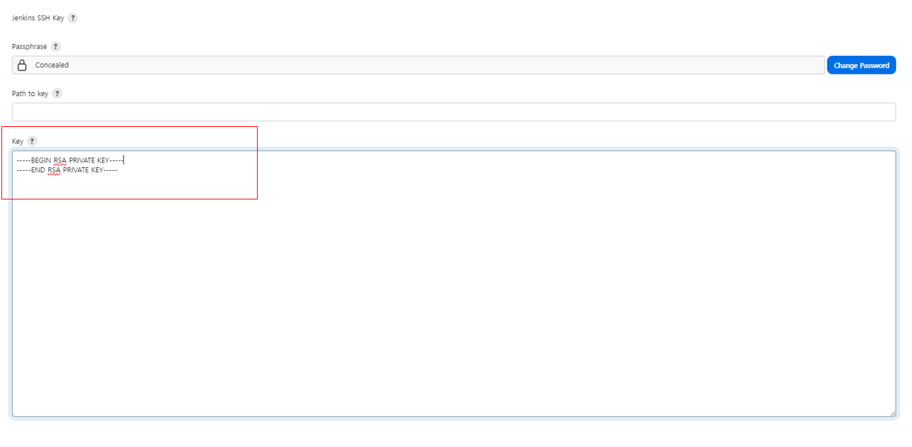 밑에 Publish over SSH 에 Key 부분은