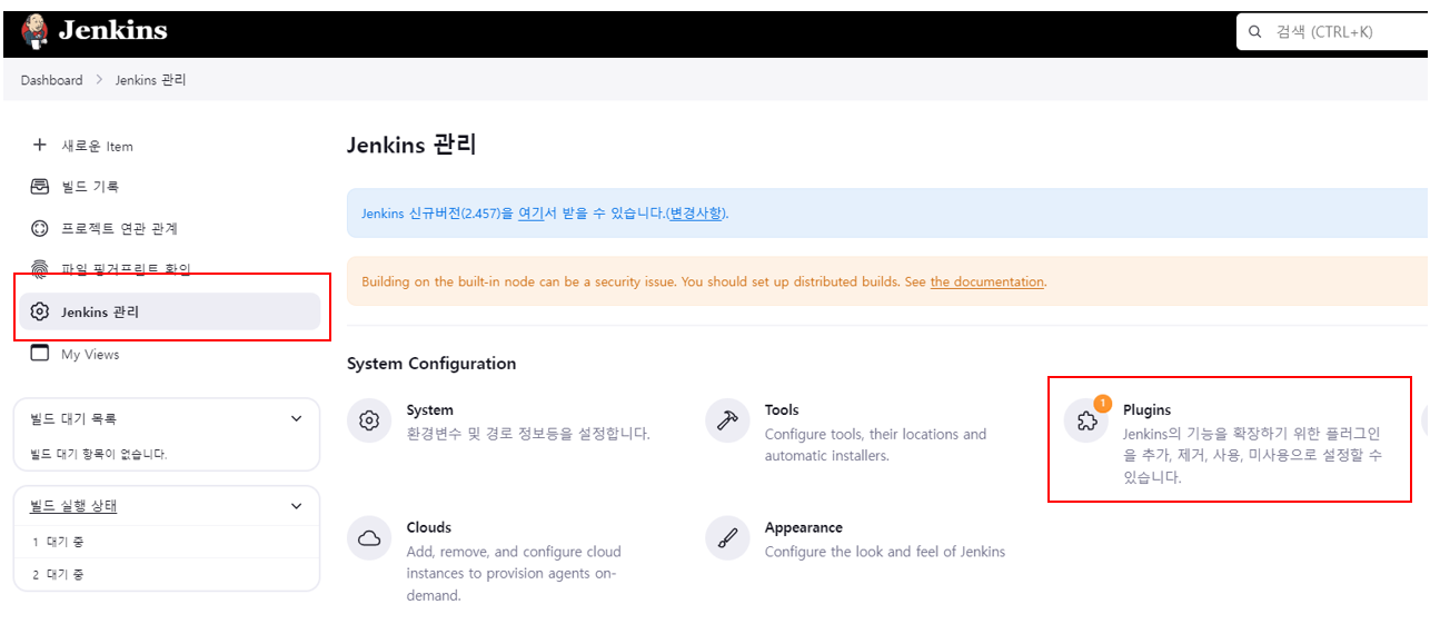 Jenkins 관리 > Plugins을 클릭